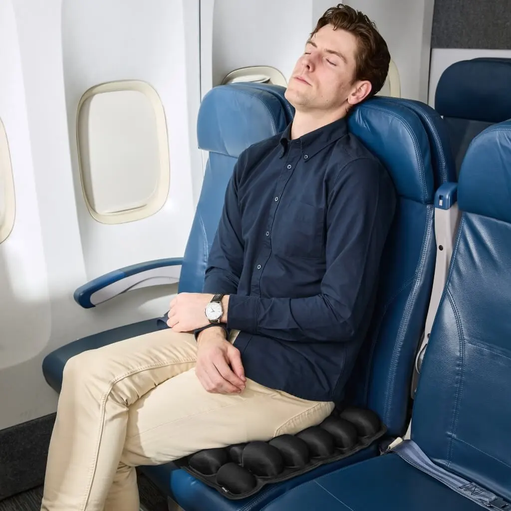 Airlines have stripped cushioning to cut costs, crushing your tailbone and spine between your body weight and the rock-hard seat below. The Sondur Travel Cushion fixes this with 24 interconnected air cells that cushion and distribute your weight evenly, preventing pain causing pressure points from forming.